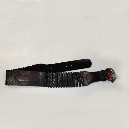 This fashionable belt features bullet-belt design, which showcases a touch of uniqueness. The black colored belt highlighted the bronze-colored buckle. Dress up or down any ensemble with this gorgeous belt.