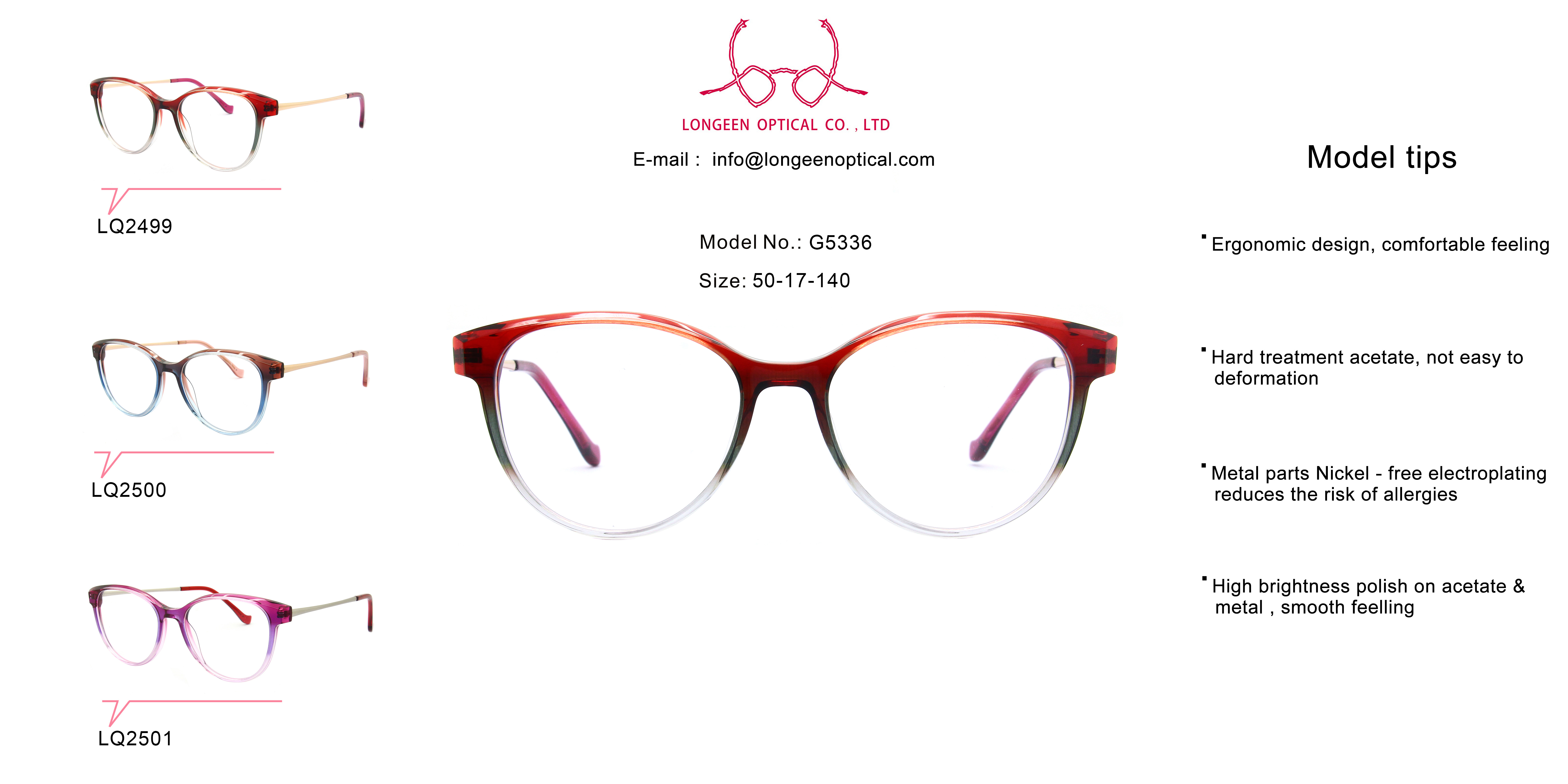 •High brightness polish on acetate & metal, smooth feeling
