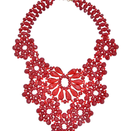 Ladies Festive Red Flower Chain Necklace Red Glass Beads Necklace