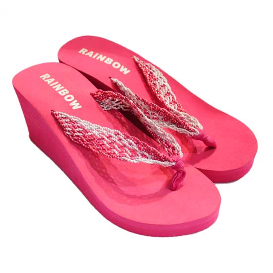 Featured here is pair of stylish flip-flops designed with wedge heels. The throne straps of the slippers are woven with stylish motifs. These good-looking, easy-wearing flip-flops are perfect accessories for any casual look.