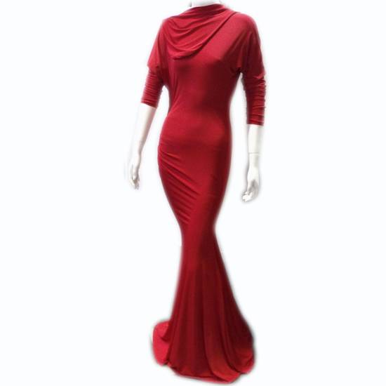 The floor-length party dress features vibrant red color for a classy look. The dress is designed with an asymmetric collar and a pleated dress bottom for a sophisticated touch. This party dress will complement your grand wardrobe with a sense of endless elegance.