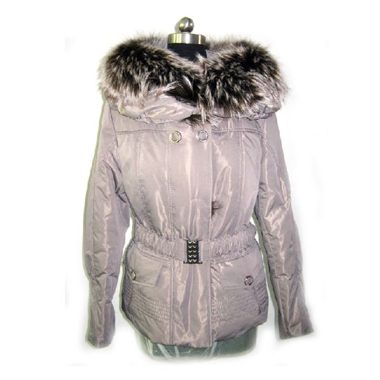 Showcased is a fashionable ladies' coat with padded interior for extra warmth. The fluffy raccoon fur accents offer added elegance and charm. Show your personal character simply with this glamorous fur coat.