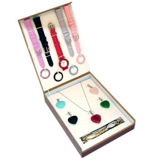 • This ladies gift set consists of a bangle watch with 5 changeable wrist watch bands and rings.