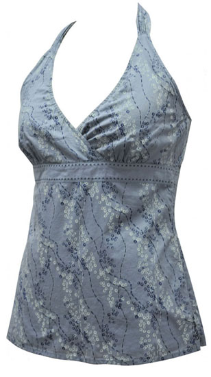 This halter top features a deep V-neck and an empire waistline. The allover printed patterns look perfect in the summer. This halter top is made of quality cotton and well tailored to offer great comfort to the wearer.