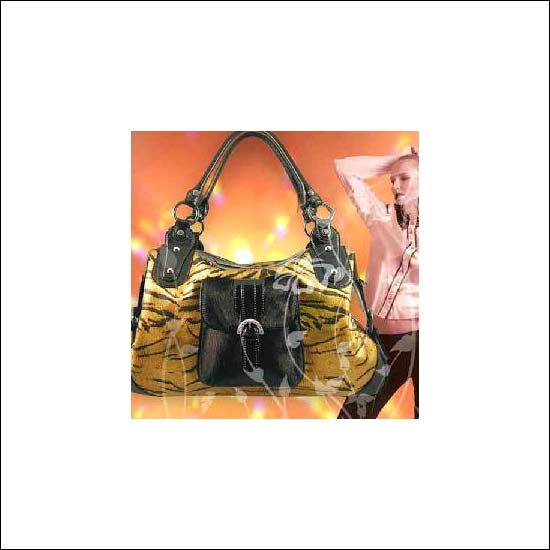 • The ladies'' handbag with imitative tiger stripes is closable by a zipper