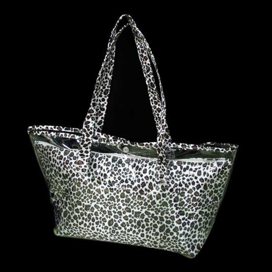 The ladies' handbag touts allover leopard prints for a delicate touch. The PVC construction offers lasting durability to stand daily tear and wear. Show off your chic styling with this beautiful ladies' handbag.