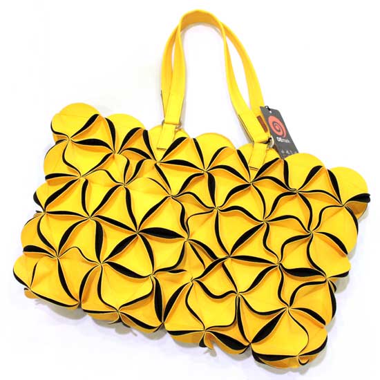 This ladies' handbag shown here boasts contrasting colors. The whole panel is adorned with triangular patterns with raised edges, creating a unique 3D and illusive effect. Show an impressive personal style with this special accessory.