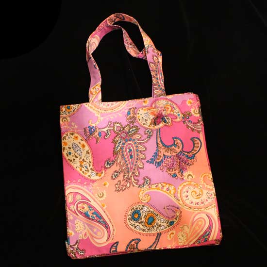 This stunning ladies' handbag comes with a large compartment to hold all your items in a generous manner. This canvas bag is printed with an elegant paisley pattern over the pink surface. This bag accompanies one from the cinema to the library.