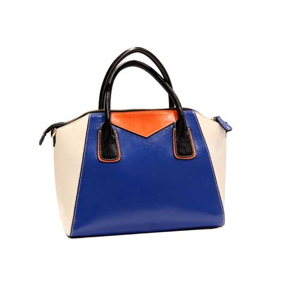 This ladies’ leather handbag comes in bright blue, orange, white and black with an energetic and fashionable touch. It boasts a roomy compartment for you to put your wallet, cosmetics, keys and other belongings. This beautiful handbag is finished with a zipper closure and two padded handles for comfy hand carrying.