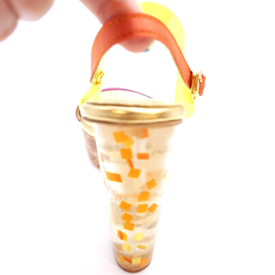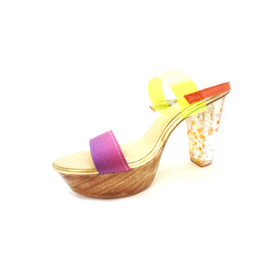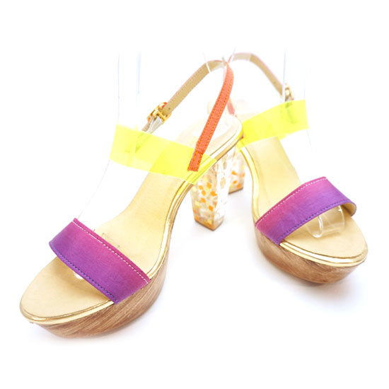 This is a pair of high-heeled sandals with a stylish and fashionable design. The sandals are designed in bright colors for an eye-catching look. This pair of comfortable sandals is ideal for ladies.