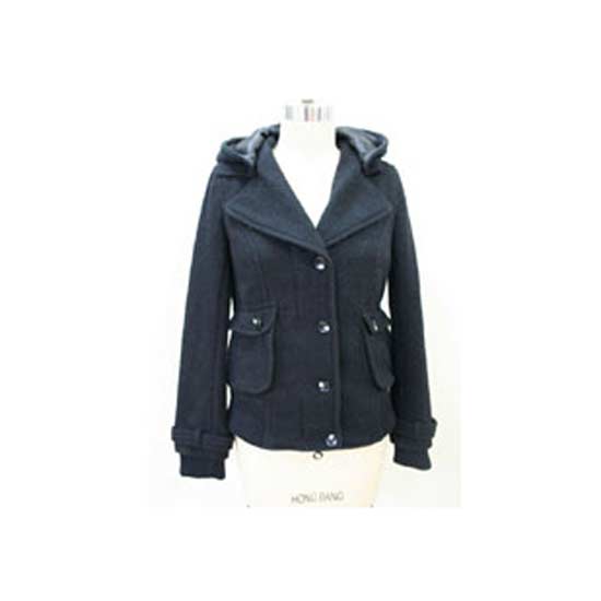 The ladies' woven coat features 2 flap pockets and a 4-button closure. It comes with an oversized notched collar with a hood to showcase a youthful and chic look. Stay warm in the cold days with this single breasted woven coat.