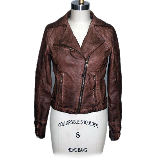 This ladies' jacket in brown offers an appealing classy touch. Its front features a slanted zipper which looks stylish. This sleek jacket makes a youthful, trendy choice for winter.