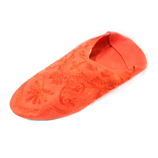 These indoor shoes are beautifully made with fancy embroidery patterns. They feature a bold orange color and a stylish V-cut design to attract customers. These indoor shoes are a comfortable and stylish choice for you.