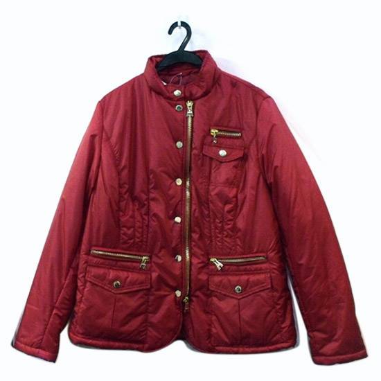The featured jacket would make a stylish addition to your wardrobe. It is red in color and is suitable for mixing and matching with dark-colored outfits. It has both zipper and button closures.