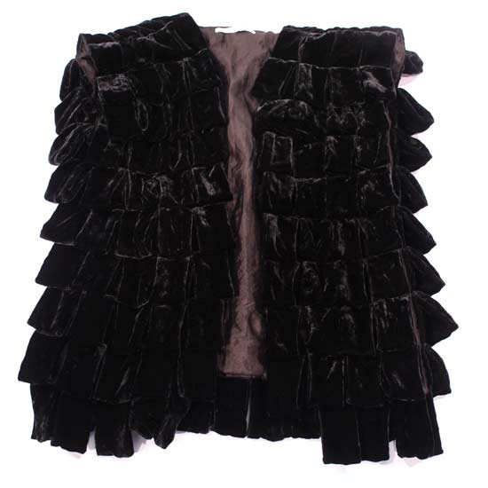 This ladies' velvet jacket features special fabric loops allover the body. It comes with a sleeveless design which exhibits a unique style. The velvet jacket offers nice warmth retention, while bringing the wearer a varied fashion style.