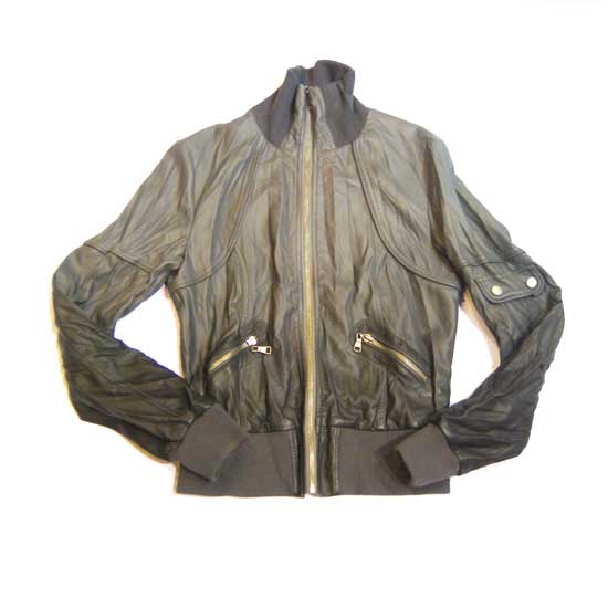 As shown is a ladies’ short jacket with gradient colors in a gray tone. The design is highlighted by shiny metal zippers and pockets on the sleeves. The banded hem keeps a slim cut for ladies.
