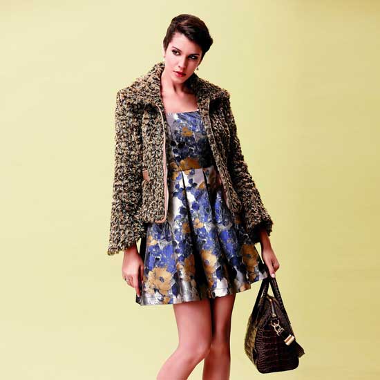 The fluffy texture simply makes this ladies’ jacket stand out from the rest. The classy jacket boasts a wide collar and asymmetrical sleeves for a bold fashionable statement. The front is configured with side pockets for added style and functionality.