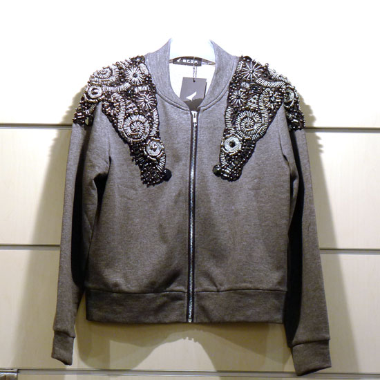 This is a ladies' jacket that is fully accented with shimmering beads on the shoulder. It is designed with a classic neckline, a zip-up closure front and long sleeves. The slim-cut design helps to showcase your figure perfectly.