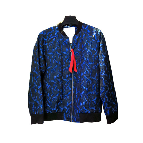 This is a ladies' jacket with a dainty and elegant design. It is printed with bright blue patterns for a touch of uniqueness. This jacket is easy to mix and match with different kinds of trousers.