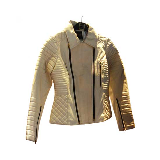 This ladies' jacket features a slim cut to showcase your slender body shape. The dual zipper closure on the front adds style to the whole piece. The leather jacket is a perfect addition to your fashion wardrobe.