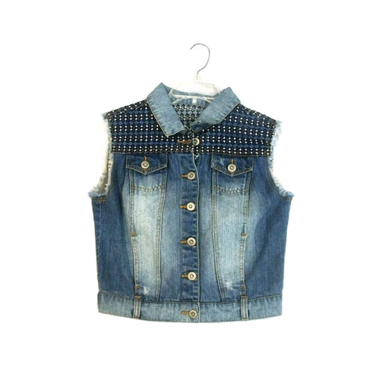 This is a ladies' denim jacket coming with a sleeveless design. The denim is carefully washed to offer a vintage appearance. The buttoned design offers you great wearing convenience.