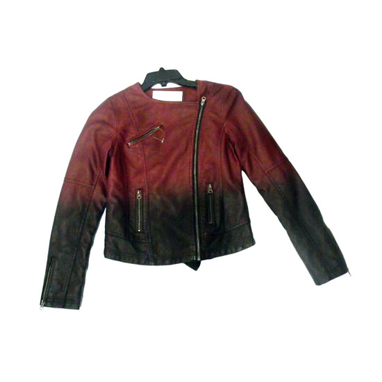 This ladies' jacket comes in a fading red and black color. It is accented with an asymmetrical zipper for a unique touch. It is equipped with a zip-up pocket on both sides for you to store small items.