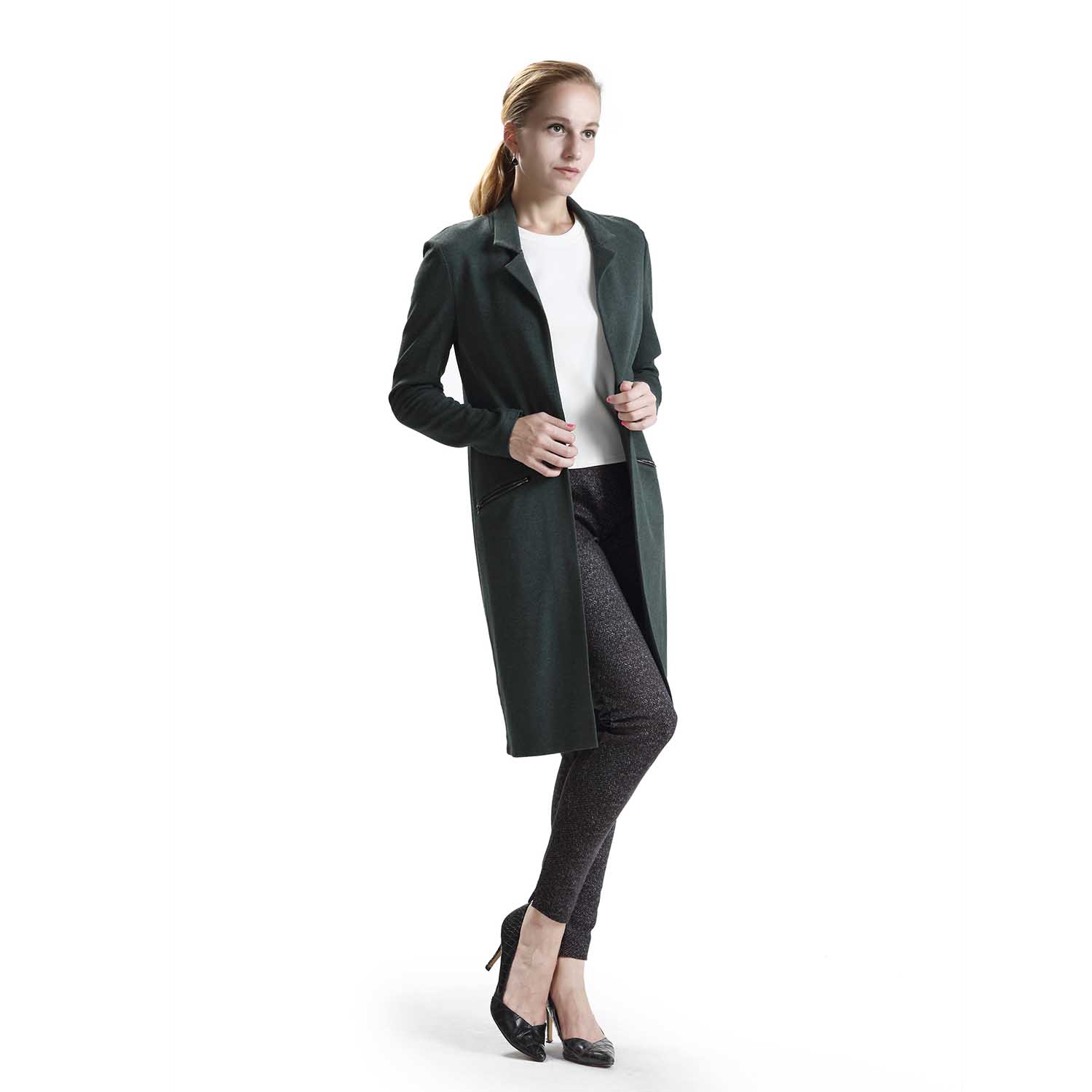 • Style: Ladies office jacket in navy color with zipper pocket