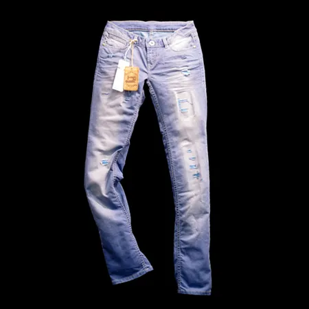 These jeans for ladies are made of 68% cotton and 33% spandex. They are characterized by a super low rise cut with a slim fit. The trousers showcase deliberate faded effects and abrasions.