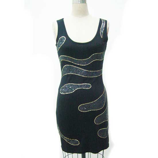 This sleeveless jersey dress features a round neckline with a flattering fit. The sequins are delicately embroidered to appear like biological cells, dazzling with enchanting radiance. This ladies' jersey dress simply displays a sleek sheath with a feminine silhouette.