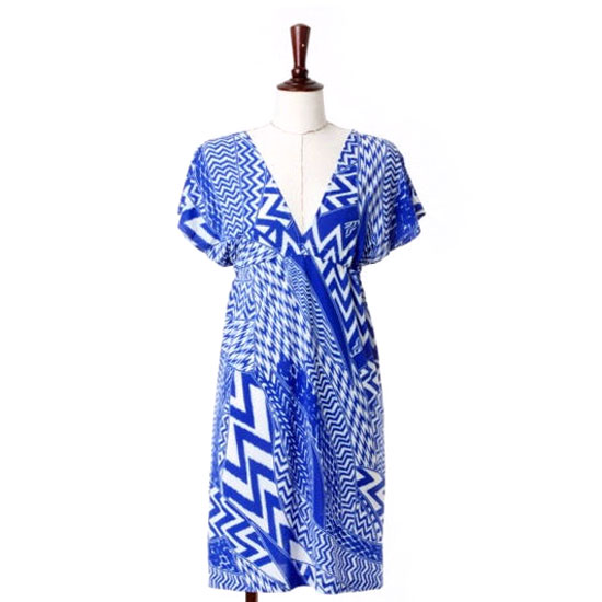 This is a ladies’ jersey dress that is made of top-quality material for ultimate wearing comfort. The allover two-toned patterns highlight this dress for a decorative touch. This one-piece dress is finished with a classic V-neck neckline and short sleeves.