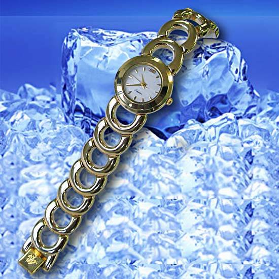 This bracelet-styled watch features a brass-constructed case and link bracelet. It boasts a clean and contemporary white dial with golden hands and hour markers. The gold-tone straps give out a touch of luxury, making it a great accessory to enhance the grand collection of ladies.