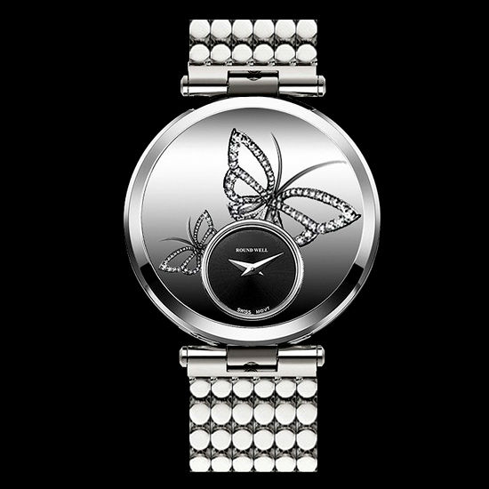 This bracelet watch features a smooth polished dial with a pair of butterflies made of inlaid diamonds. Designed to bring a dazzling and elegant wrist adornment for ladies, this quartz watch is powered by precise watch movements and popular for its comfortable and stylish beaded band made of top-grade stainless steel.