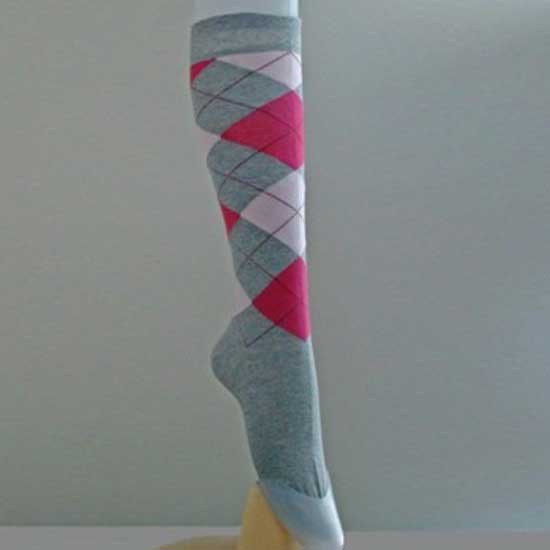 This pair of ladies' knee-high socks is made of cotton, spandex and nylon. The calf-length hoses features attractive argyle patterns. Made of pliable materials, they are elastic and cozy to wear.