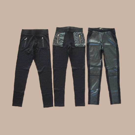 This series of knitted leggings comes in black color with contrasting silvery details. The elastic band guarantees maximum flexibility and wearing comfort. The leggings are made of top-quality material and is soft-to-the-touch, and is an essential addition to your ready-to-wear wardrobe.