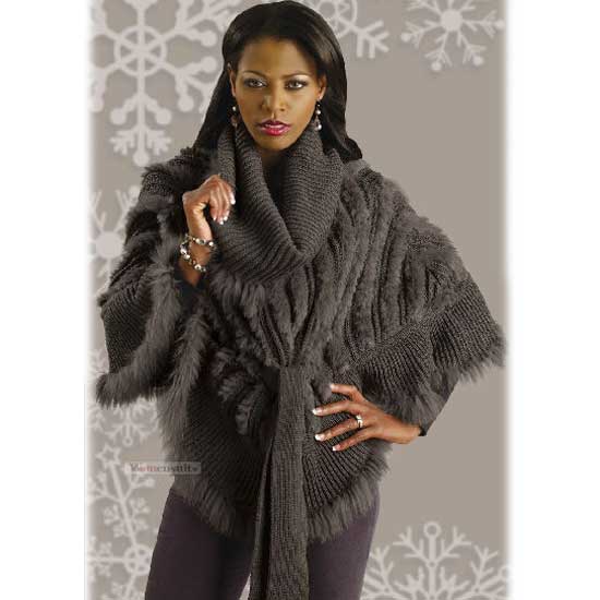 This is a fashionable poncho coming with an eye-caching appearance in taupe. It is meticulously knitted with exquisite rabbit fur, adding a deluxe and sophisticated sense to your look. This stylish poncho surely is an excellent addition to your wardrobe.
