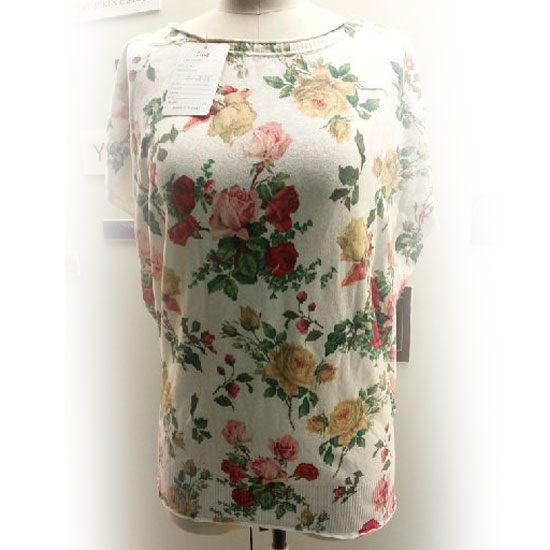 This is a ladies knitted pullover that comes with colorful digital prints. Made of viscose blended with cotton, this pullover is lightweight and comfortable to wear. The short bat sleeves add a playful touch to the piece.