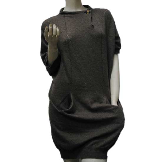 This is a ladies' knitted sweater long dress with excellent craftsmanship. Featuring a round collar, the long dress comes with side pockets and a tunic bottom. This long dress is sure to provide comfort and warmth for wearers.