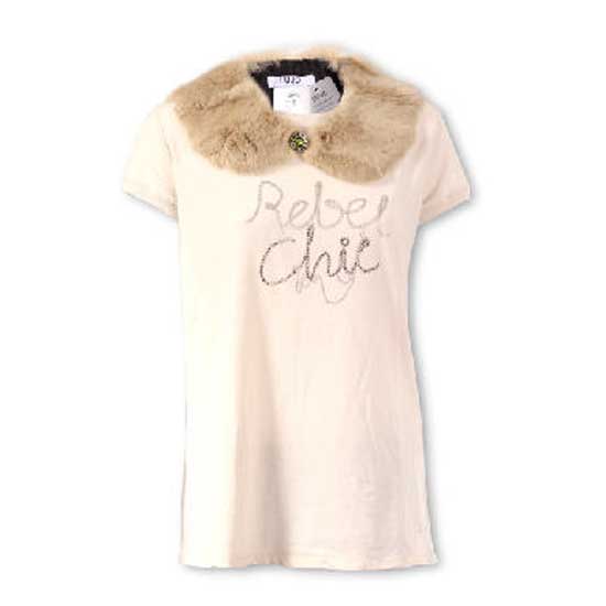This ladies’ knitted T-shirt comes in clean white with a fur collar and cap sleeves. The elegant printed lettering lends extra style. Made of 95% cotton and 5% elastic SJ, this beautiful T-shirt promises utmost wearing comfort.