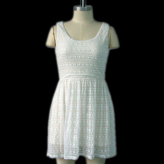 This round-neck dress delights you with allover patterned laces for an elegant feminine look. Solid white tone design sheds a touch of purity. This charming nylon lace dress is a must-have item for your summer wardrobe.