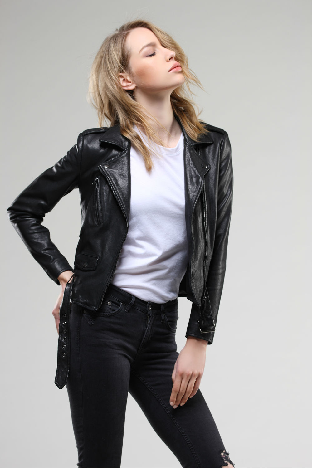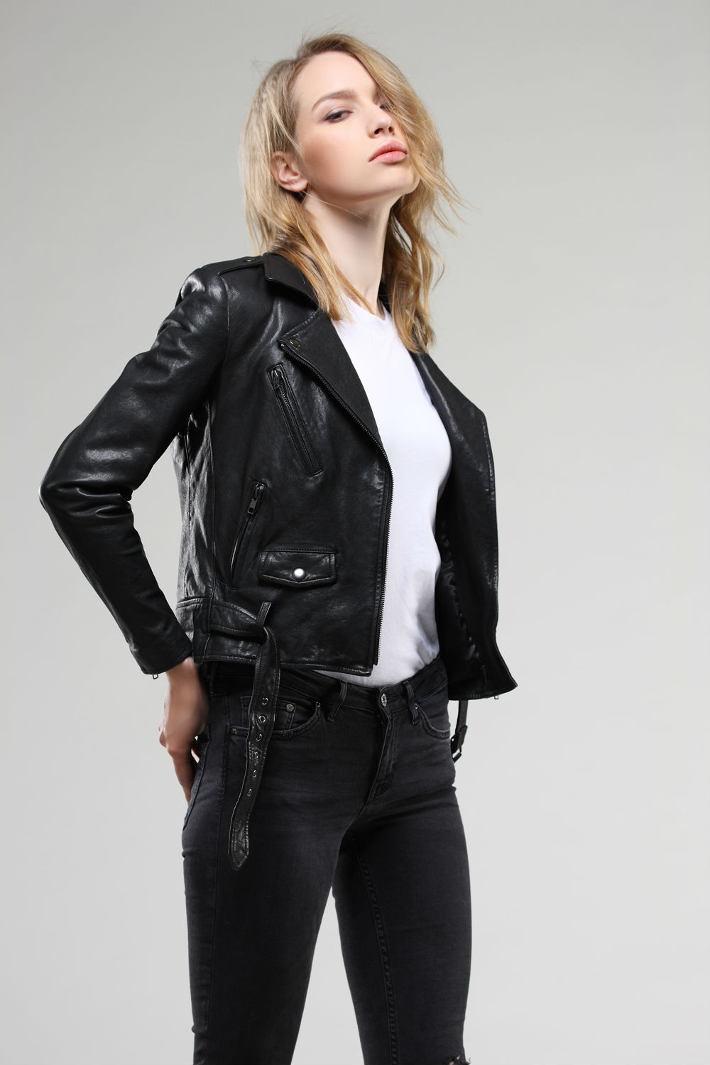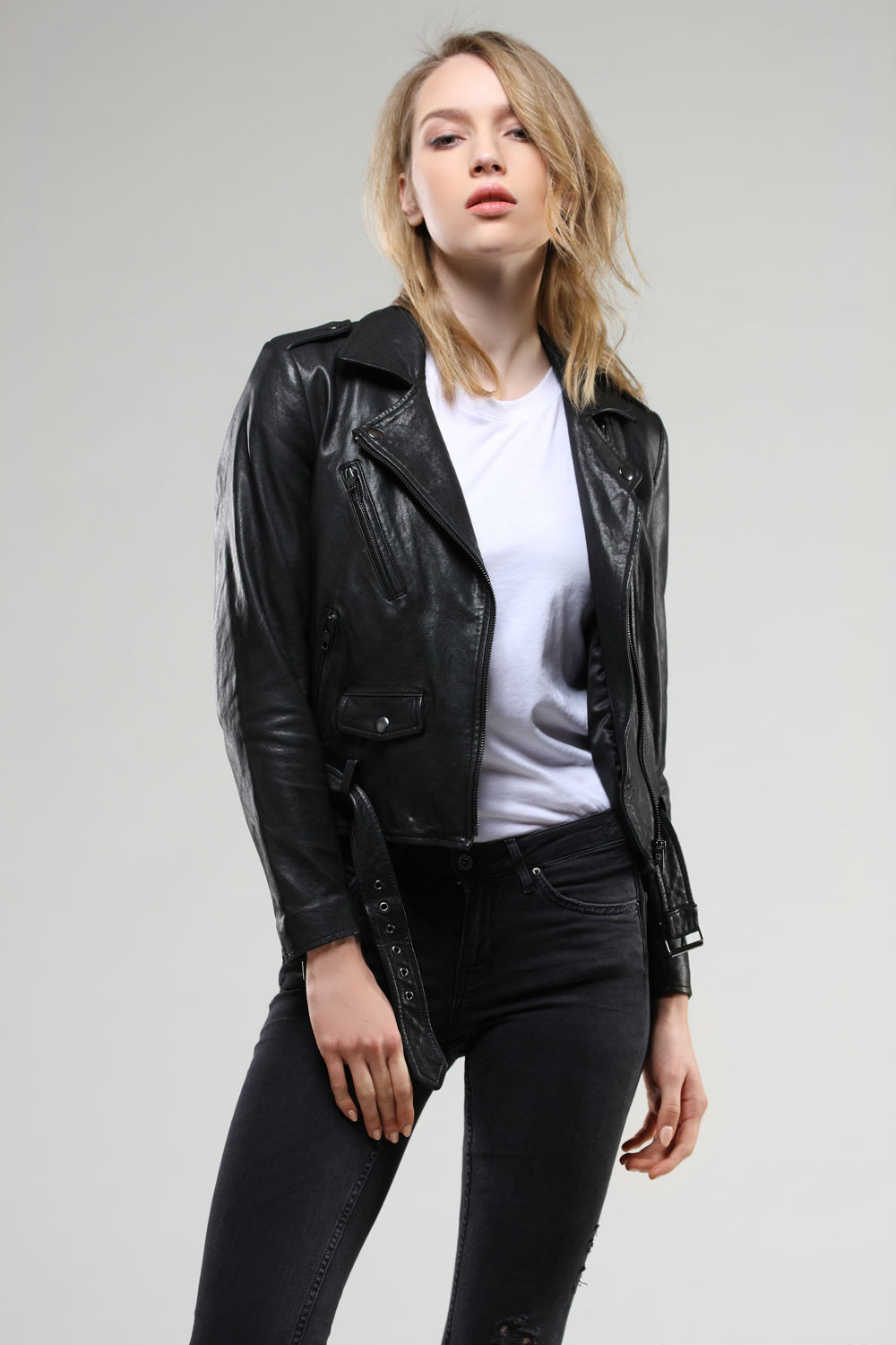 • A classic biker jacket with multiple pockets, asymmetrical zippers and a signature collar.