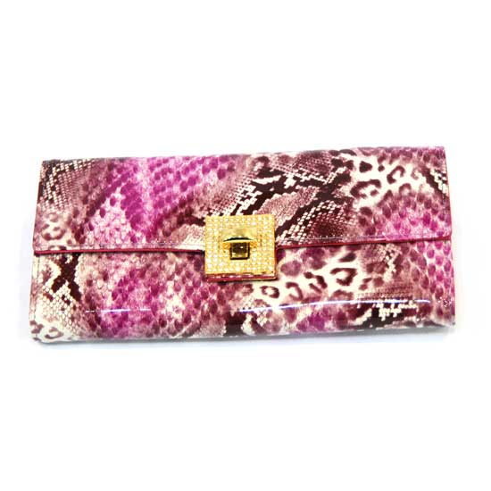 Featured is a ladies' leather purse with a textured construction for a more elegant look. The buckle is well adorned with stones for a sense of elegance. This trendy purse is a fancy accessory for a fashionable lady.