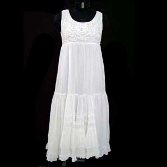 The sleeveless dress features an empire waist with a hand-embroidered bodice to showcase elegant delicacy. The flared hem offers a flowing touch. Accent your style with this pure embroidered dress.