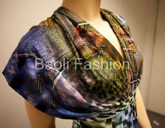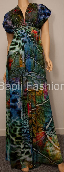 This pretty long dress is specially made for elegant ladies. The printed net fabric dress is accented with shinning beading in the chest for added style. This long dress complements your feminine look nicely.