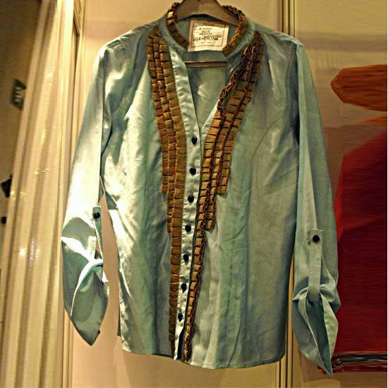This fashionable long-sleeve blouse comes with button straps on the cuffs for a unique styling. The full-button front and mandarin collar feature lovely ruffle trimming in brown color. The loose-fitting bodice flatters any body shape. Add some funkiness to any ensemble with this gorgeous shirt.