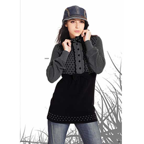 The long-sleeve blouse features a polka dot top and a bow on the empire waist for a chic appearance. The dotted hem offers great styling. This long polka dot blouse is a fashionable addition for your wardrobe this fall.