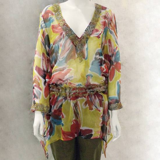 Featured is a long-sleeve tunic with a deep V-neckline. The beading along the cuffs, waistline and neckline gives out a sense of elegance. The irregular hemline showcases your unique taste and style. The artistic all-over floral pattern adds a unique touch to the entire piece, making it a perfect item for all ladies.