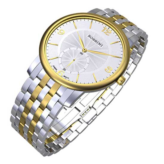 This stunning watch features a classic stainless steel case, a round 18K gold bezel, a sapphire glass lens cover, three hands, a stainless steel band with 18K gold plating, and a double-press butterfly clasp closure. It boasts a high-precision Swiss mechanical ETA movement and 30ATM waterproof capabilities. This alluring mechanical watch is a stylish addition to your timepiece collection.