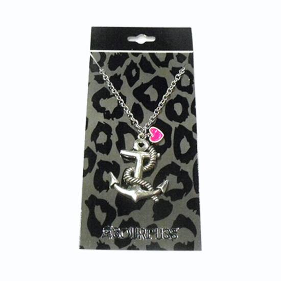 This ladies' necklace features an anchor-shaped design in a sleek, silvertone finish. The finely engraved details make a strong statement to the design. This necklace makes a stylish way to complement the fashion ensemble of ladies.