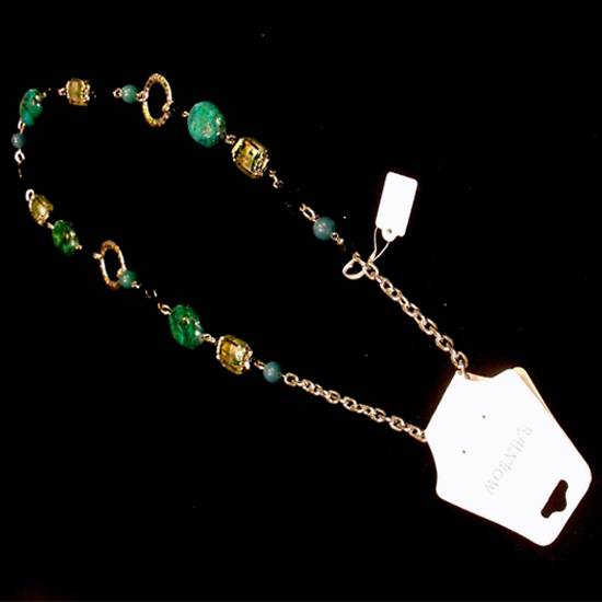 This ladies' necklace features chained pieces of delicately crafted mineral stones. The stones are steadily chained, making the necklace rest stably on the neck. Simply wear this and radiate your charm in evening occasions.