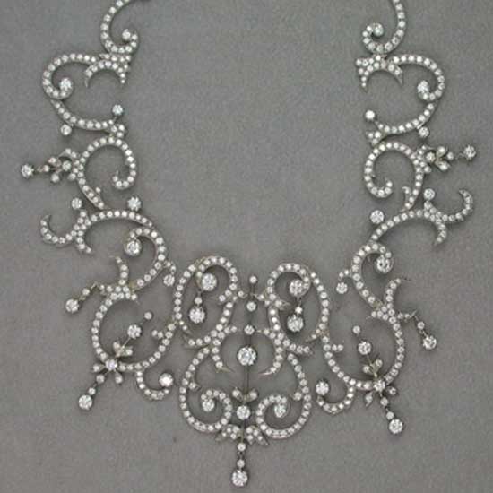 Shown here is a ladies' necklace made of 18K white gold. The necklace is embellished with glittery diamonds that are well cut. It is also characterized by a unique and attractive appearance.